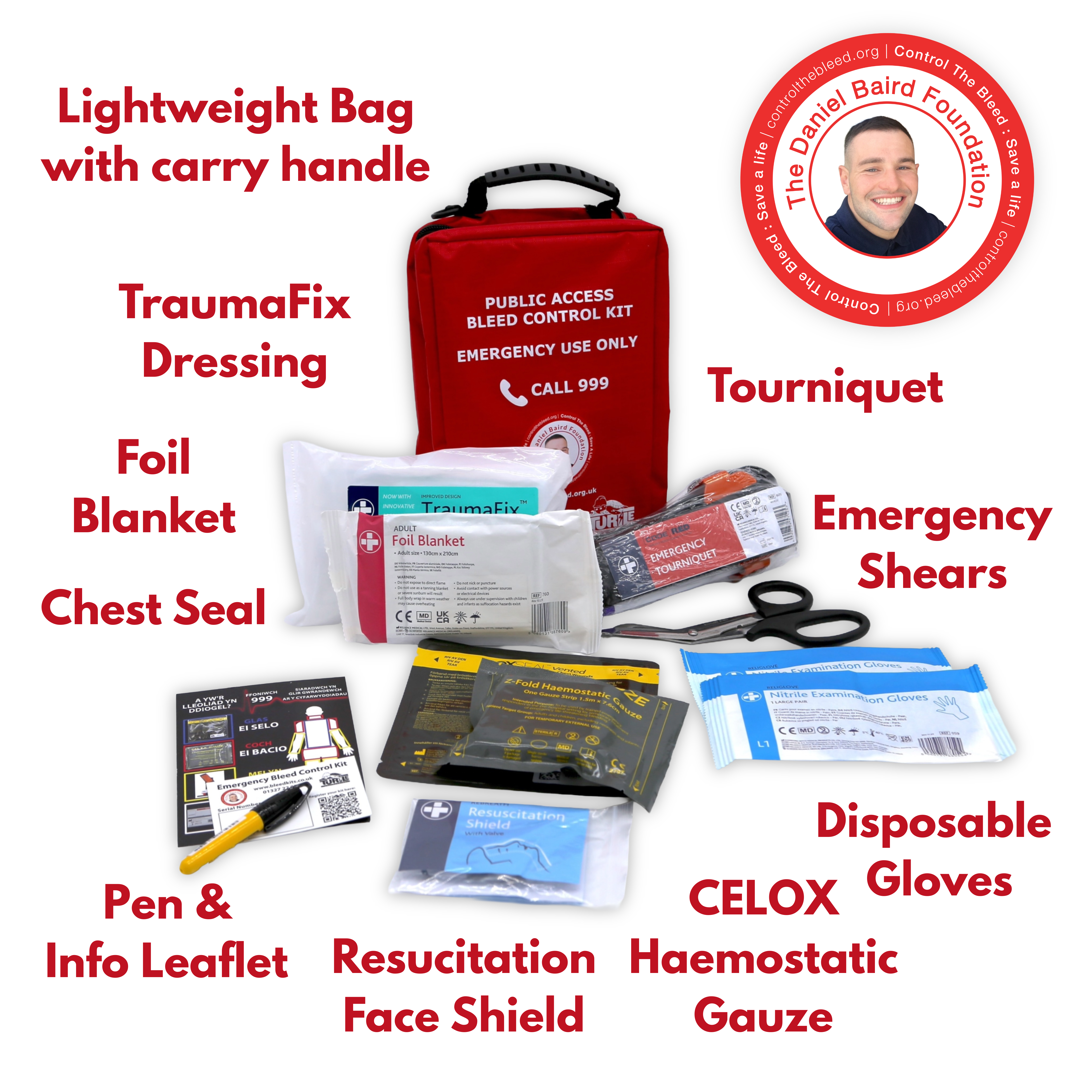 Catastrophic bleeding is a medical emergency where every second matters. The Daniel Baird Bleed Control Kit is specifically designed to help manage life-threatening bleeds before professional help arrives.